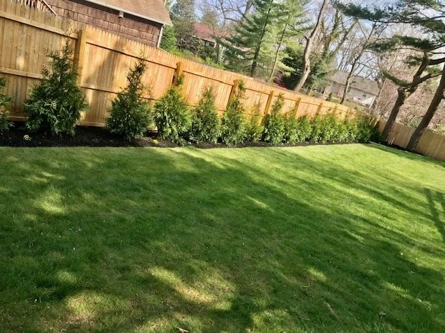 A customers yard without the Arborvitae hedge that we are about to plant. Arborvitae's are great shrubs for hedge's, natural borders, and additional privacy. Modern botany has produced disease resistant Arborvitaes that fend off unwanted disease and pests!