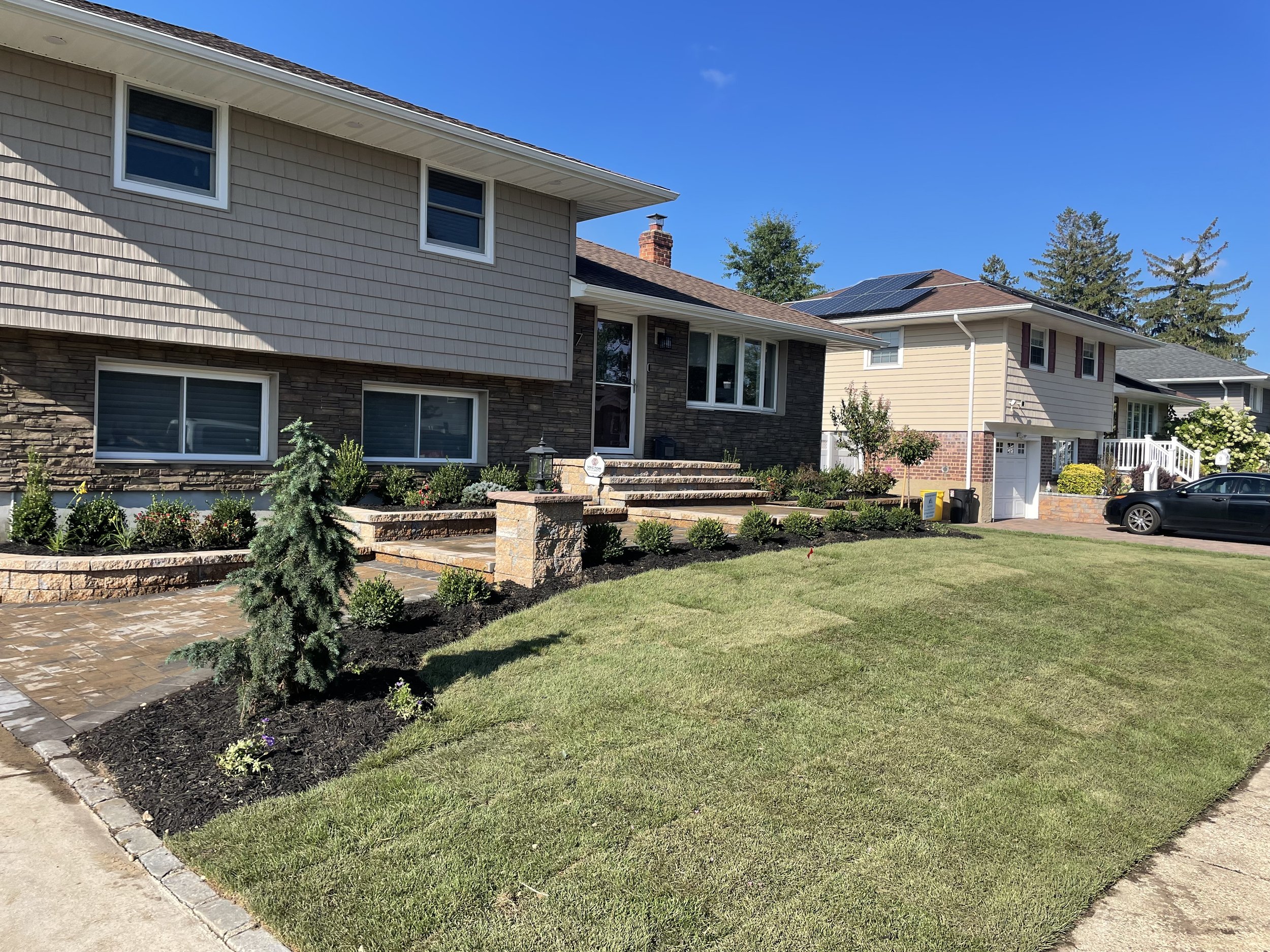 The finished project, the homeowner wanted to wait for the following season to do the landscaping so we put in some Chrysanthemums for them so that they could have some color in the front yard.